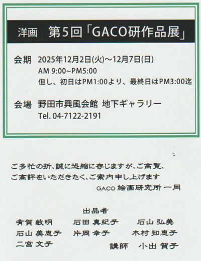 出品作家 小出賀子 有賀敏明 石山美恵子 二宮文子