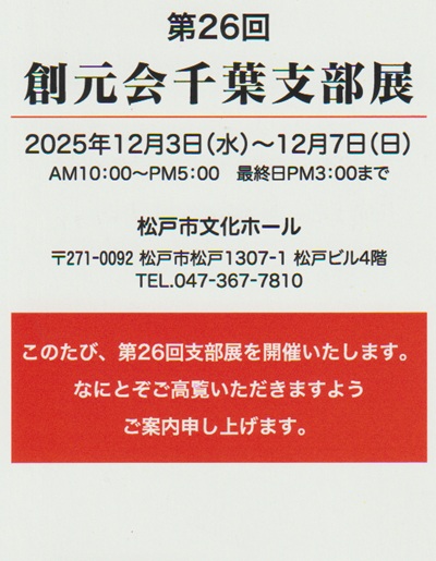10:00~17:00 初日13:00~ 最終日16:00船橋市民ギャラリー